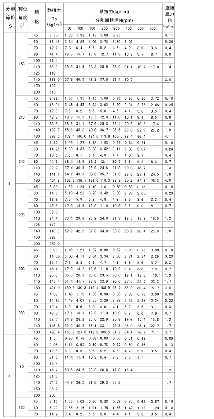 对于机械设计人员,选用凸轮分割器时要考虑到因素为:惯性力矩,惯性扭矩,摩擦扭矩,工作扭矩,必要扭矩,凸轮轴扭矩,电机功率等因素,也要兼顾工作和间歇节拍的因素如总循环时间,分度时间等因素。